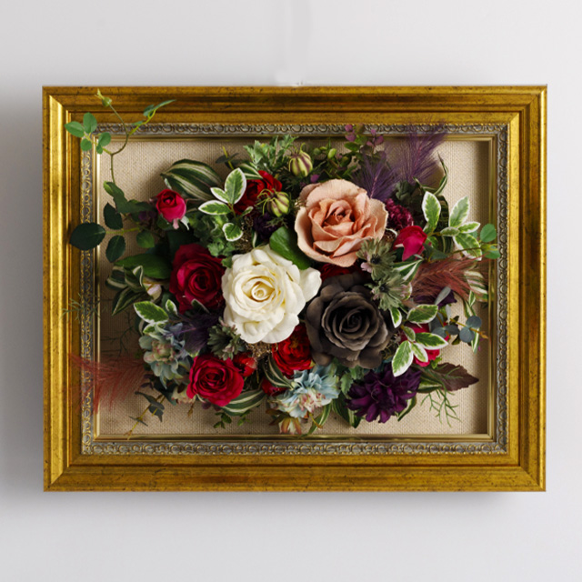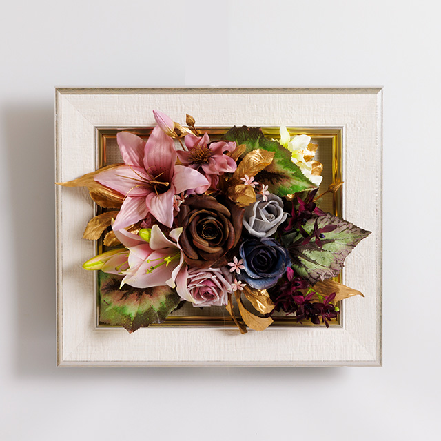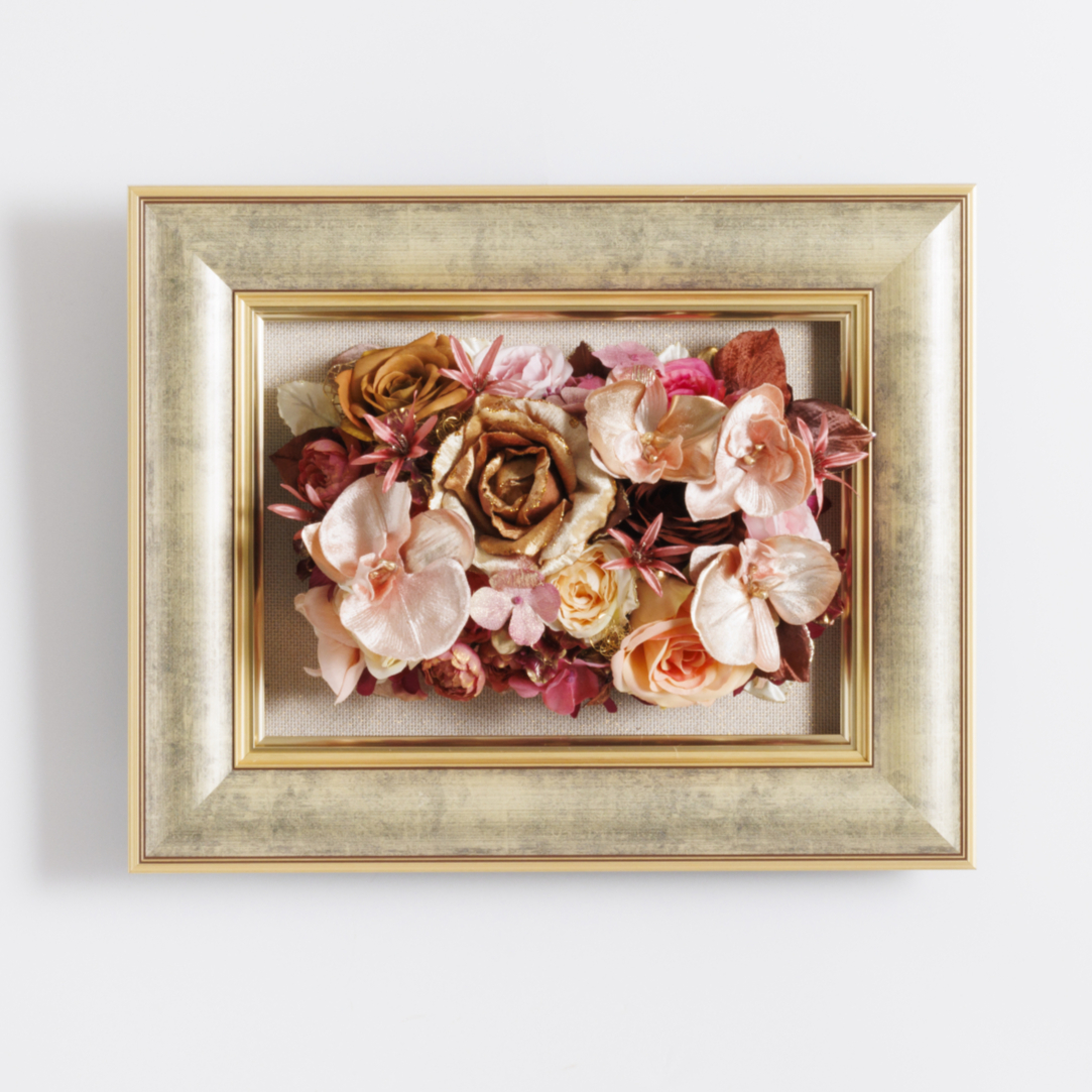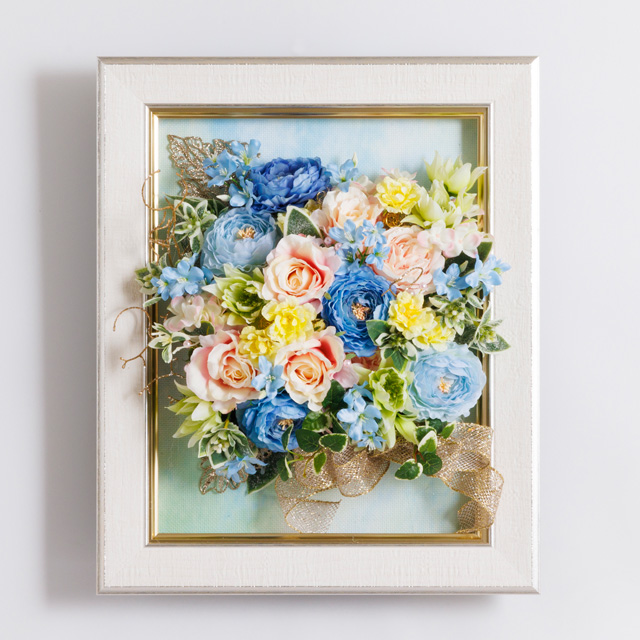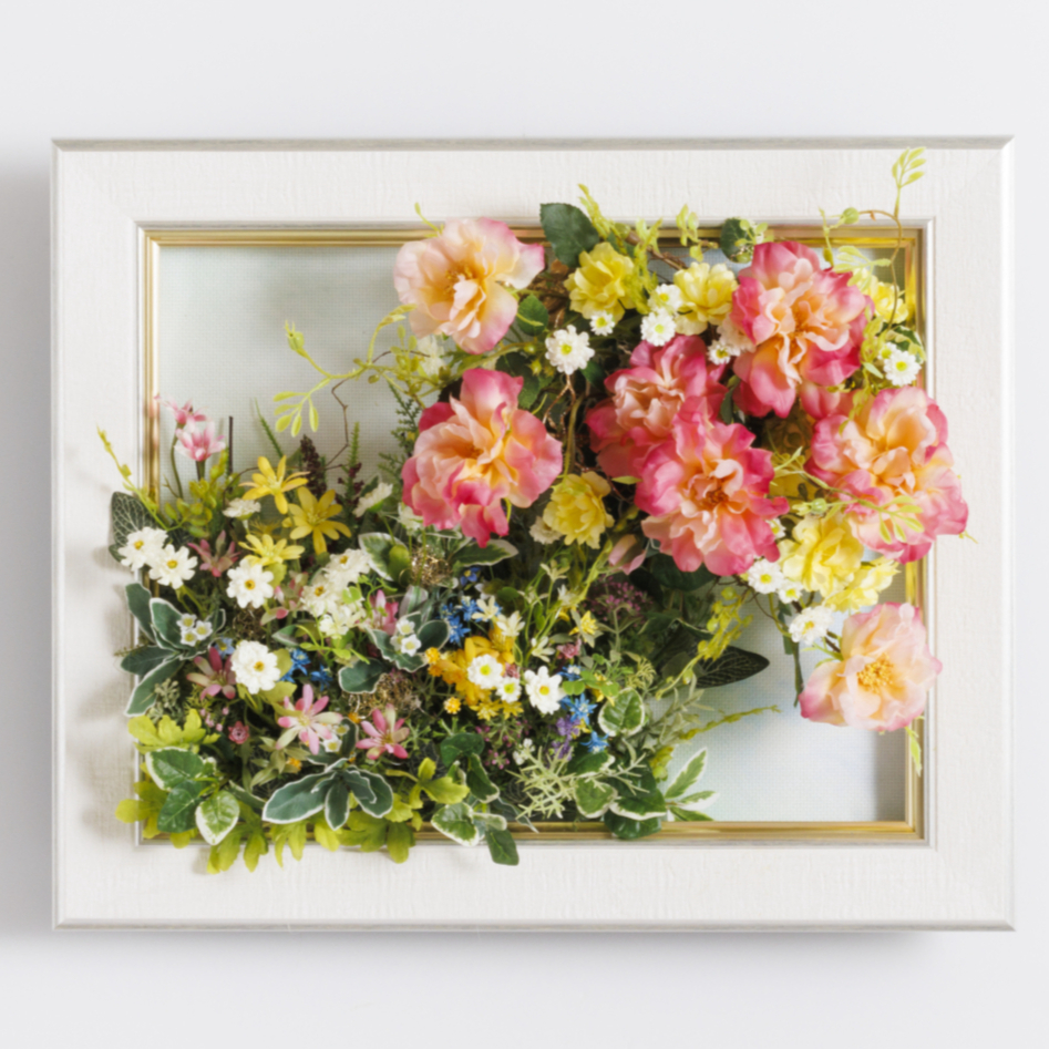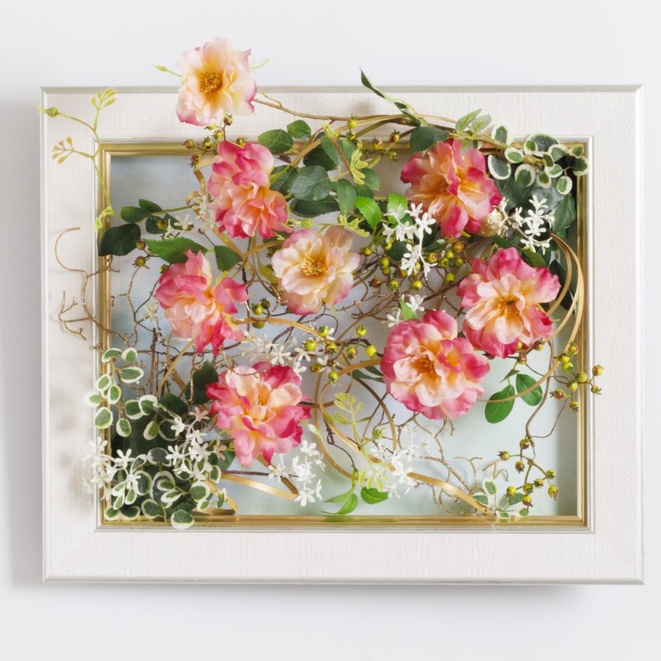 フラワーアートフレームです。花空独自の手法で額の中に花物語を描いてみました。