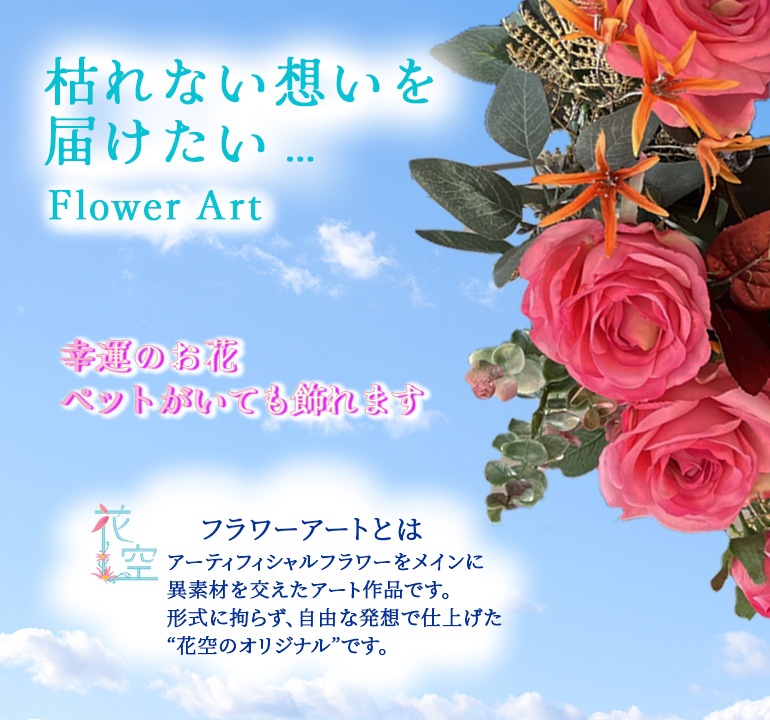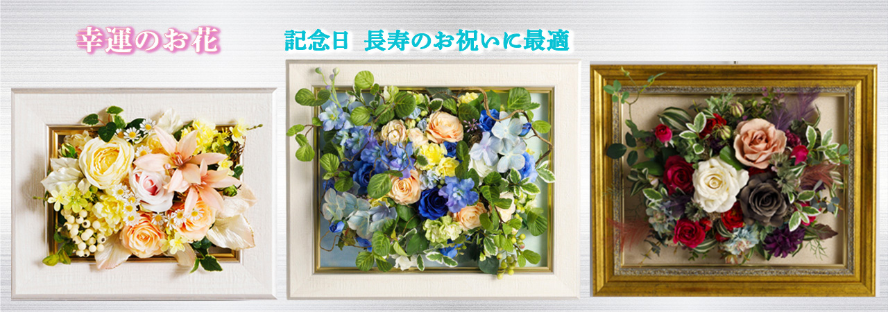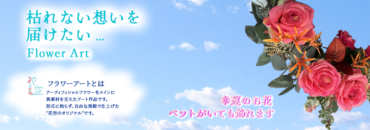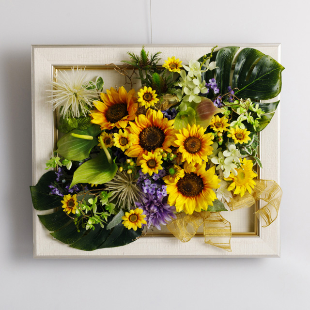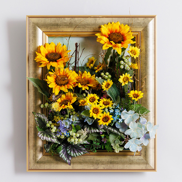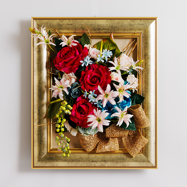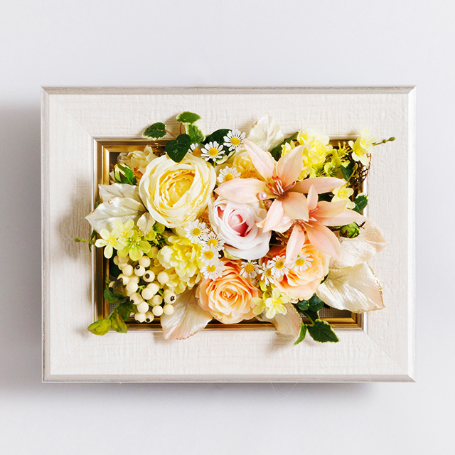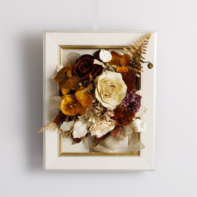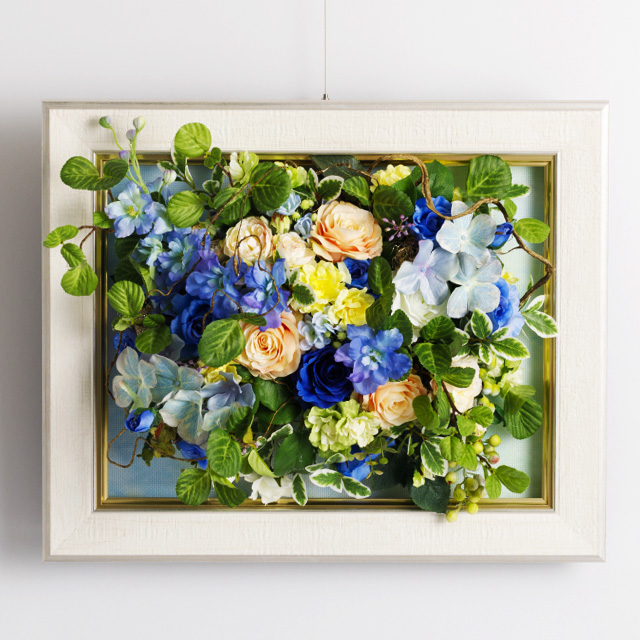 フラワーアートフレームです。花空独自の手法で額の中に花物語を描いてみました。