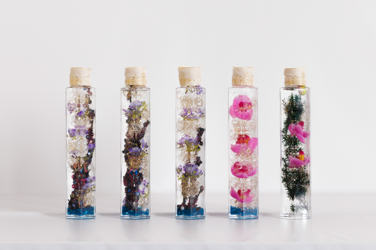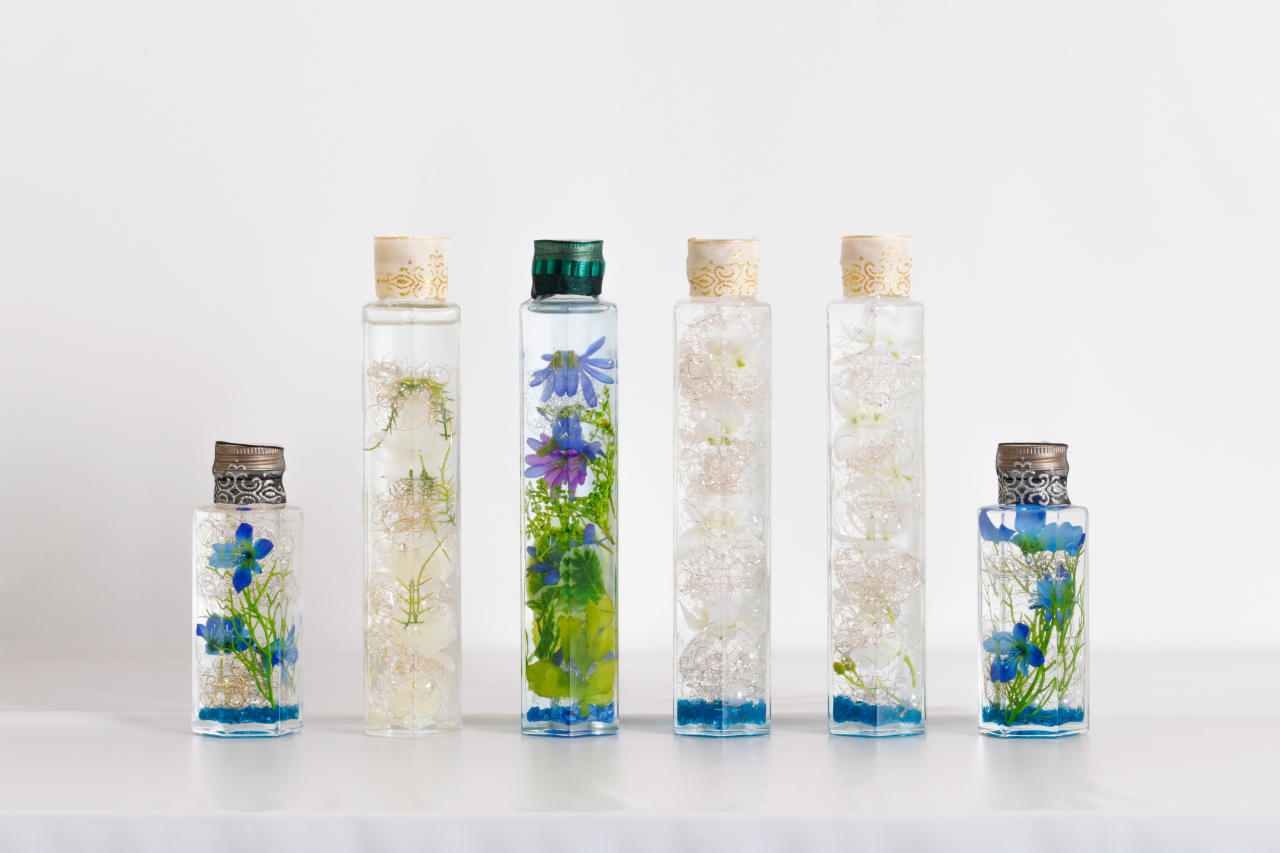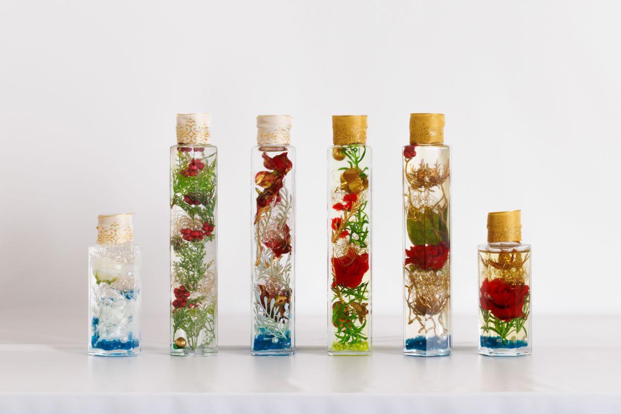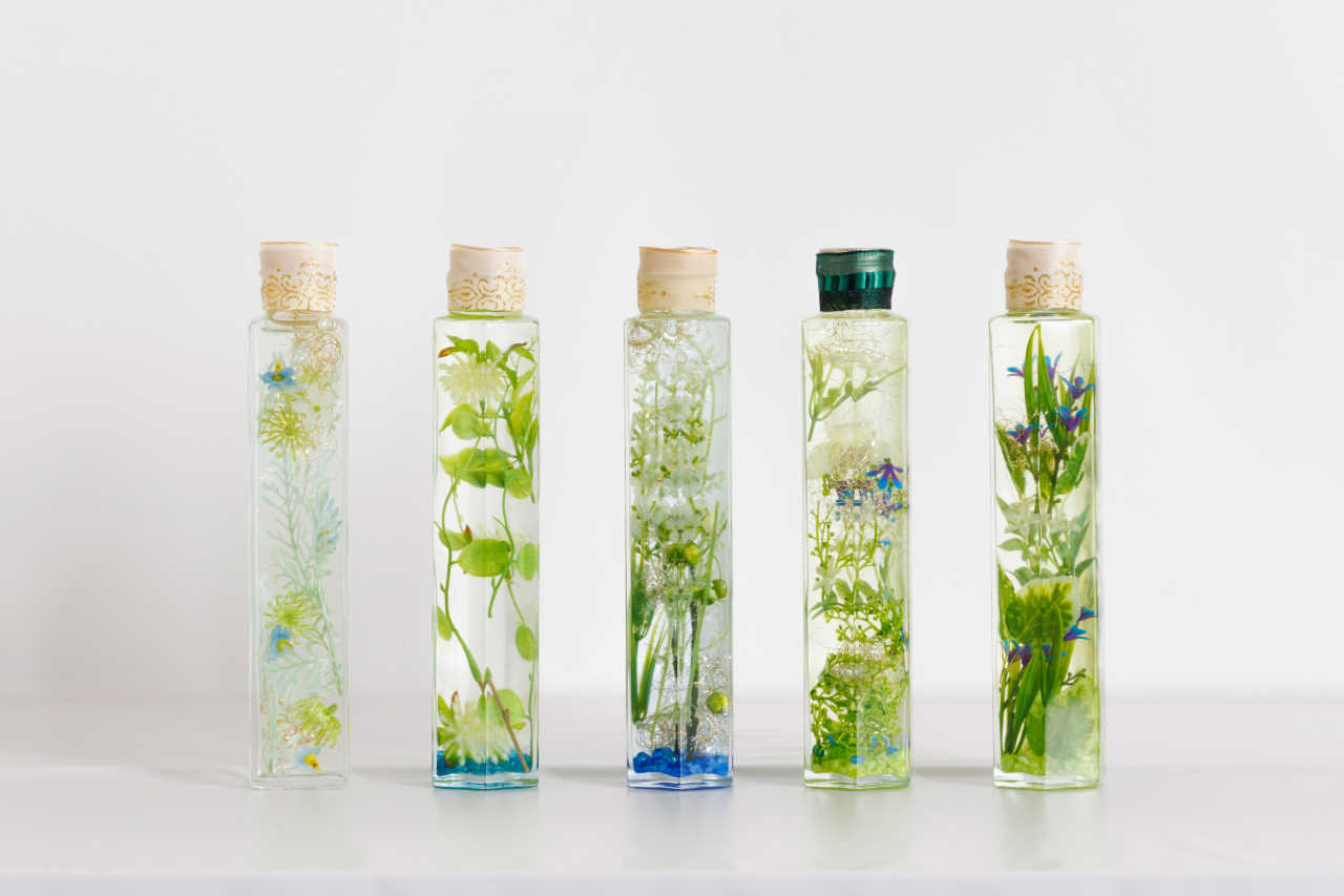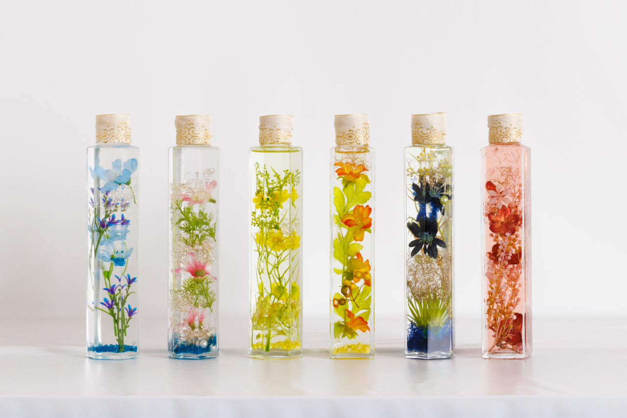 観賞目的でガラス瓶に入れ、石油系オイルの中に浸したクラフトアートです。