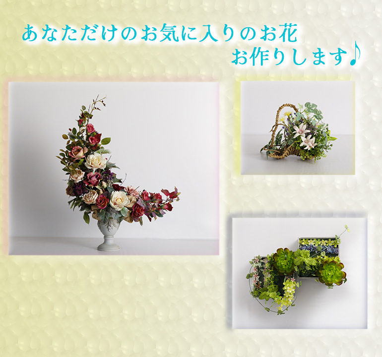 縁起が良く伝統的でありつつも、個性的なアイテムを使ったデザインを揃えてお待ちしております。